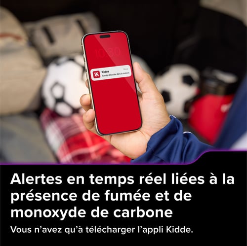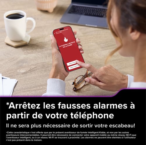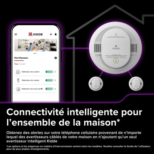 Connectivité intelligente pour l’ensemble de la maison : Obtenez des alertes sur votre téléphone cellulaire provenant de n'importe lequel des avertisseurs câblés de votre maison en n'ajoutant qu'un seul avertisseur intelligent Kidde**