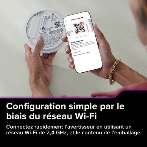 Connectez rapidement l’avertisseur en utilisant un réseau Wi-Fi de 2,4 GHz, et le contenu de l’emballage.